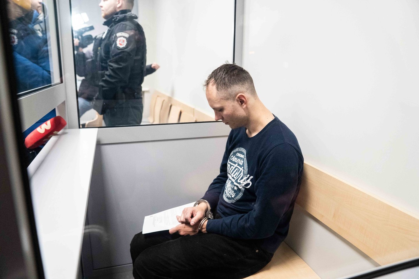 Sekmadienio rytą Kauno apylinkės teisme vykęs suėmimo posėdis buvo uždaras, tačiau paaiškėjo svarbi detalė: Benas Mikutavičius per jį ištarė tik vieną žodį.