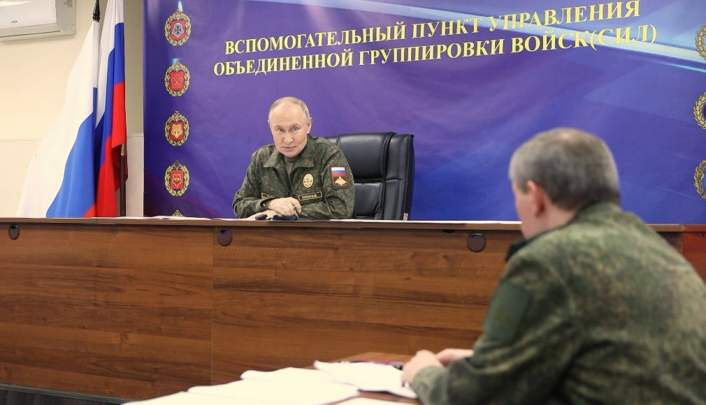 Vladimiras Putinas (kairėje) kalbasi su Rusijos ginkluotųjų pajėgų vado Valerijumi Gerasimovu / SCANPIX nuotr.