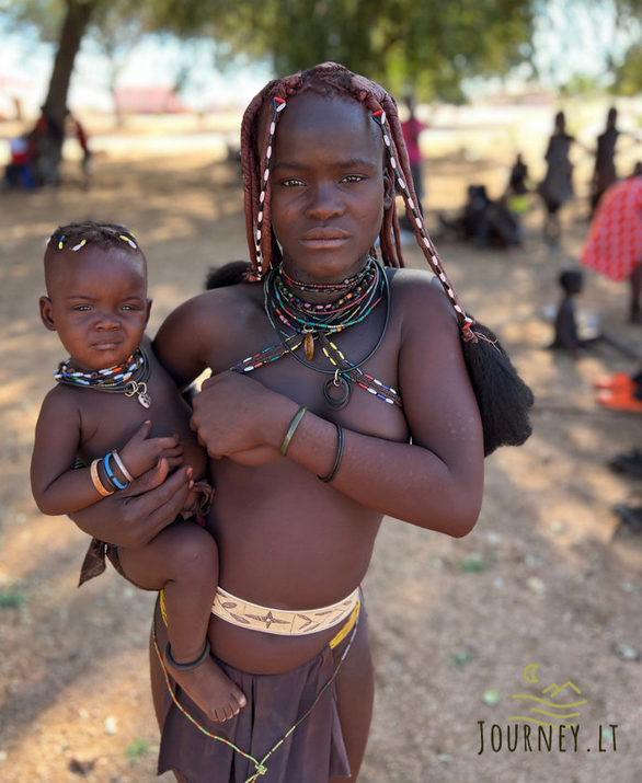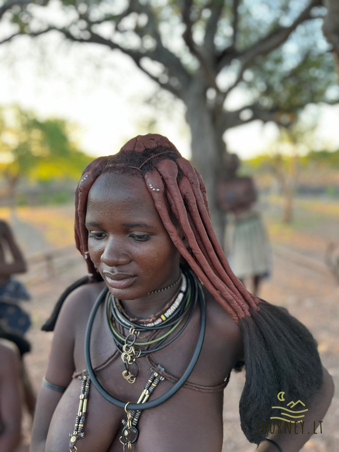 Himba moterys – tai tarsi gyvi meno kūriniai. Jų kūnai padengti ryškiai raudonu tepalu, gaminamu iš karvės sviesto ir ochros – smulkių vulkaninių miltelių. Tai ne tik kosmetika, bet ir natūrali apsauga nuo saulės ir vabzdžių. Vandens šiose vietose trūksta, todėl maudymasis pakeičiamas kruopščiu odos tepimu. Plaukai – veltiniai dredai, nudažyti tuo pačiu tepalu, formuojami nuo mažų dienų, o saugant juos miegama ant medinių pagalvių.
