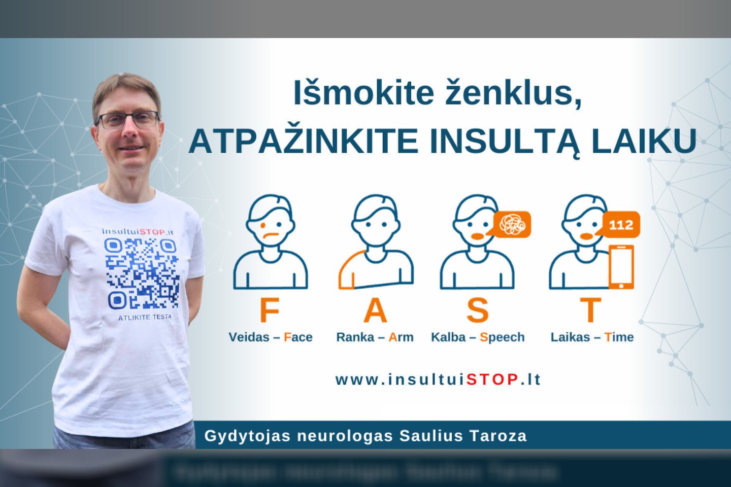 „Insulto požymiai dažniausiai atsiranda staiga ir nesukelia skausmo, todėl daugelis žmonių jų iškart neatpažįsta ir galvoja, kad tai praeis. Tačiau ištikus insultui, delsti negalima nė minutės: kuo greičiau žmogus gaus profesionalią medicininę pagalbą, tuo mažesni bus šios ligos padariniai“, – Lrytas anksčiau yra sakęs Klaipėdos universiteto ligoninės gydytojas neurologas Saulius Taroza.