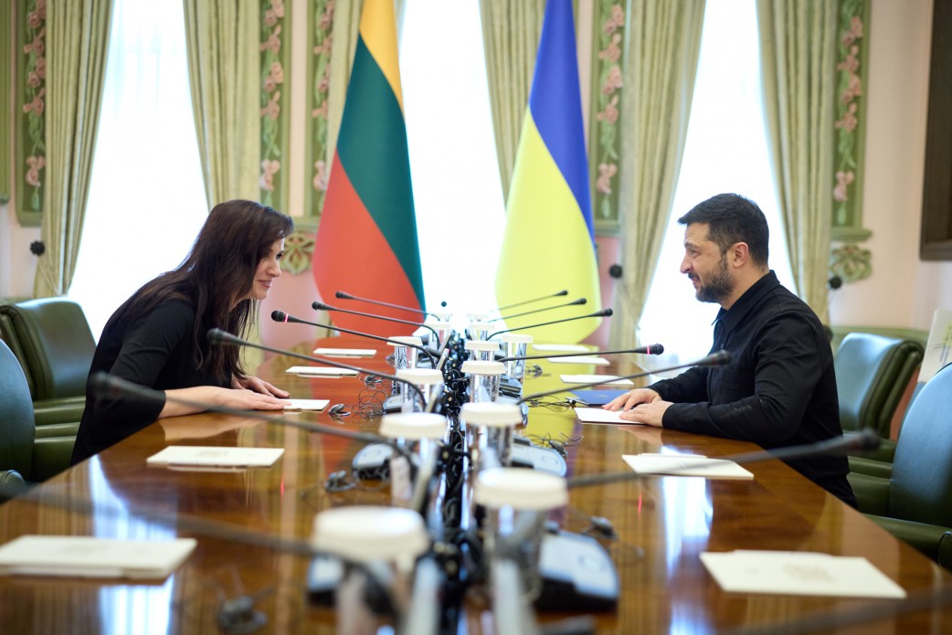 Oficialioje Ukrainos prezidento svetainėje internete paskelbti išskirtiniai vaizdai iš Volodymyro Zelenskio ir Lietuvos premjerės Ingos Ruginienės susitikimo per jos vizitą Kyjive.