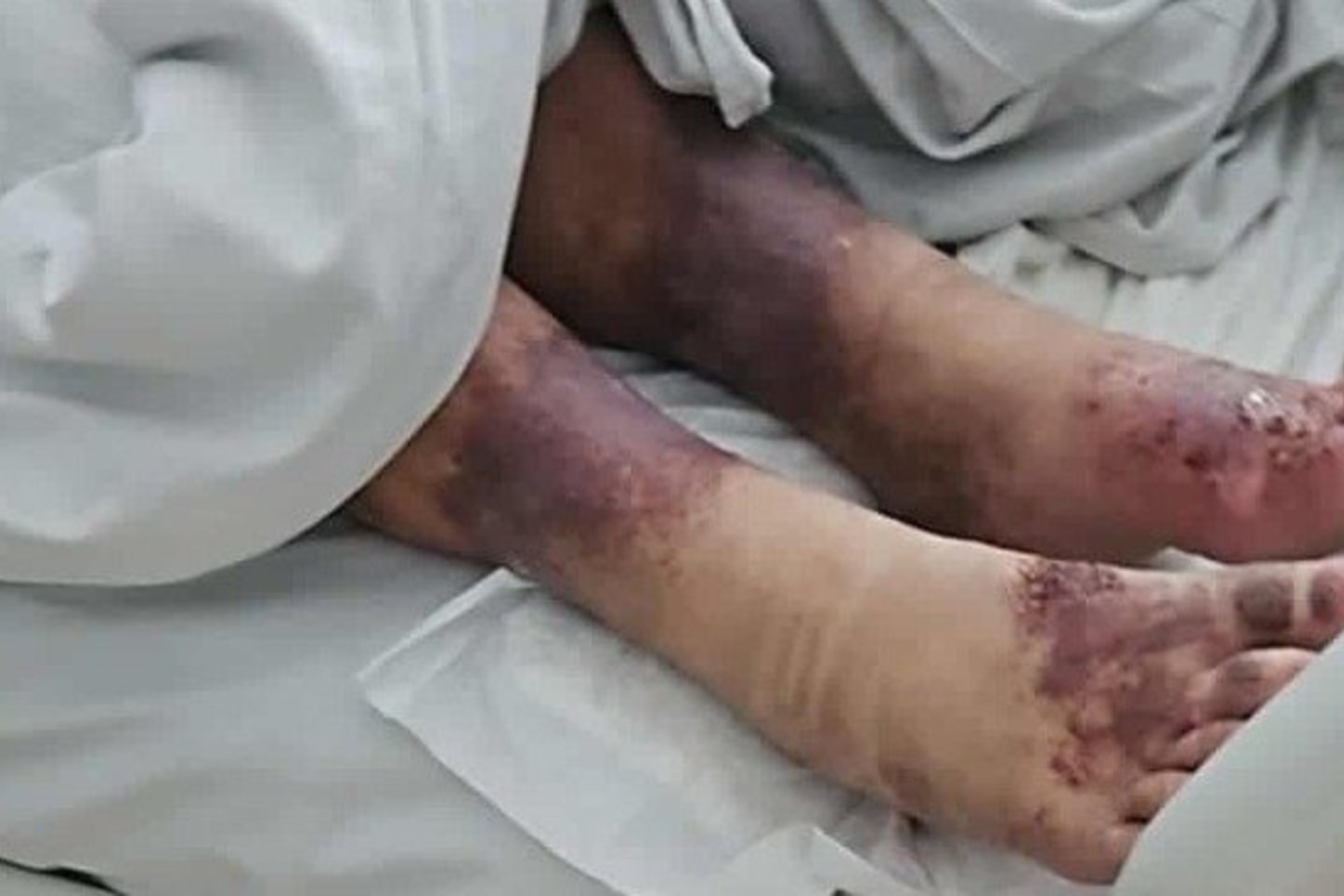 Moteris, kuri buvo kritinės būklės – išsekusi, su žaizdomis ant kojų, siekiančiomis iki kaulų, – buvo išgelbėta tik po to, kai įsikišo kaimynai ir iškvietė policiją bei greitąją pagalbą. Ji buvo tragiškos būklės.
