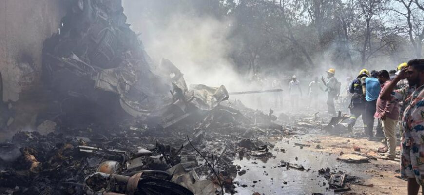 Indijos aviacijos ministras sakė esąs „šokiruotas ir priblokštas“ šios katastrofos Ahmedabade, kur AFP žurnalistas virš oro uosto matė tirštus juodų dūmų kamuolius.